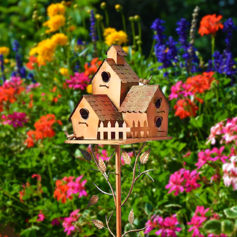 ❤️From every leaf to their curling vine tips, our whimsical Birdhouse Garden Stakes are a garden accent we love. Most of nature's birds will love this metal birdhouse garden stake, and they will choose to stay and like what they see. Stake into the ground in your garden or in a planter and add a little extra charm to your outdoor world.