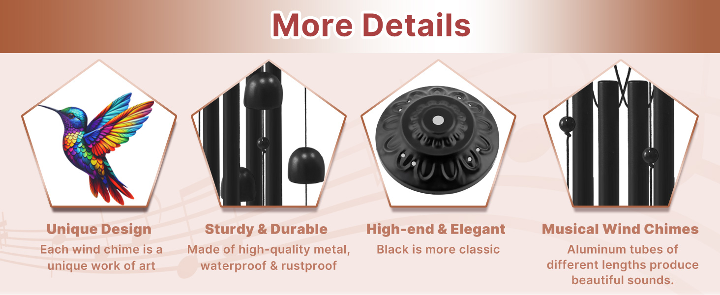 Caught by a soft breeze, the precisely tuned tubes and bells create a clear, pure, and soothing melody that calms the mind and masks unwanted noise. Perfect for the garden, balcony, yard, or porch, it brings a peaceful, relaxing atmosphere to any space.