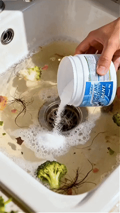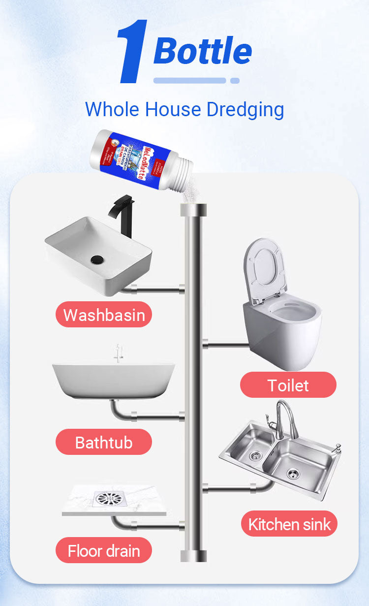 Unlike liquid cleaners that float ineffectively on standing water, this powerful granular formula sinks directly to thesource of the blockage. The high-density granules target the hardened "Bio-Cement" matrix formed by grease,soap scum, and organic waste that fuses together inside your pipes.