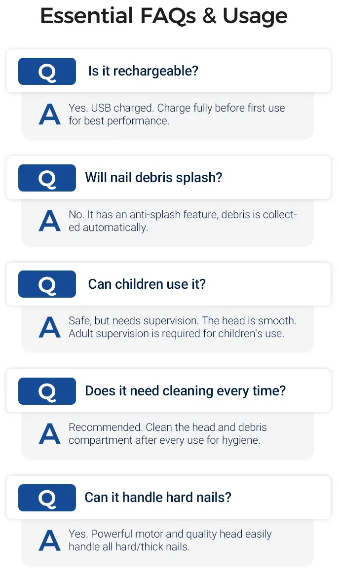 With this electric nail clipper, you can enjoy salon-quality nail care easily, safely and gently in the comfort of your home. It’s also perfect for seniors and beginners.